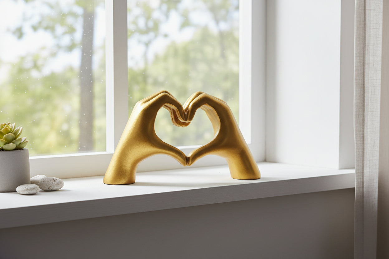 Heart Hand Statue - Gold